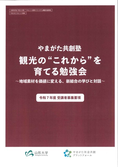 やまがた共創塾 観光の”これから”を育てる勉強会~地域素材を価値に変える、新結合の学びと対話~の令和7年度受講者の募集が始まりました。